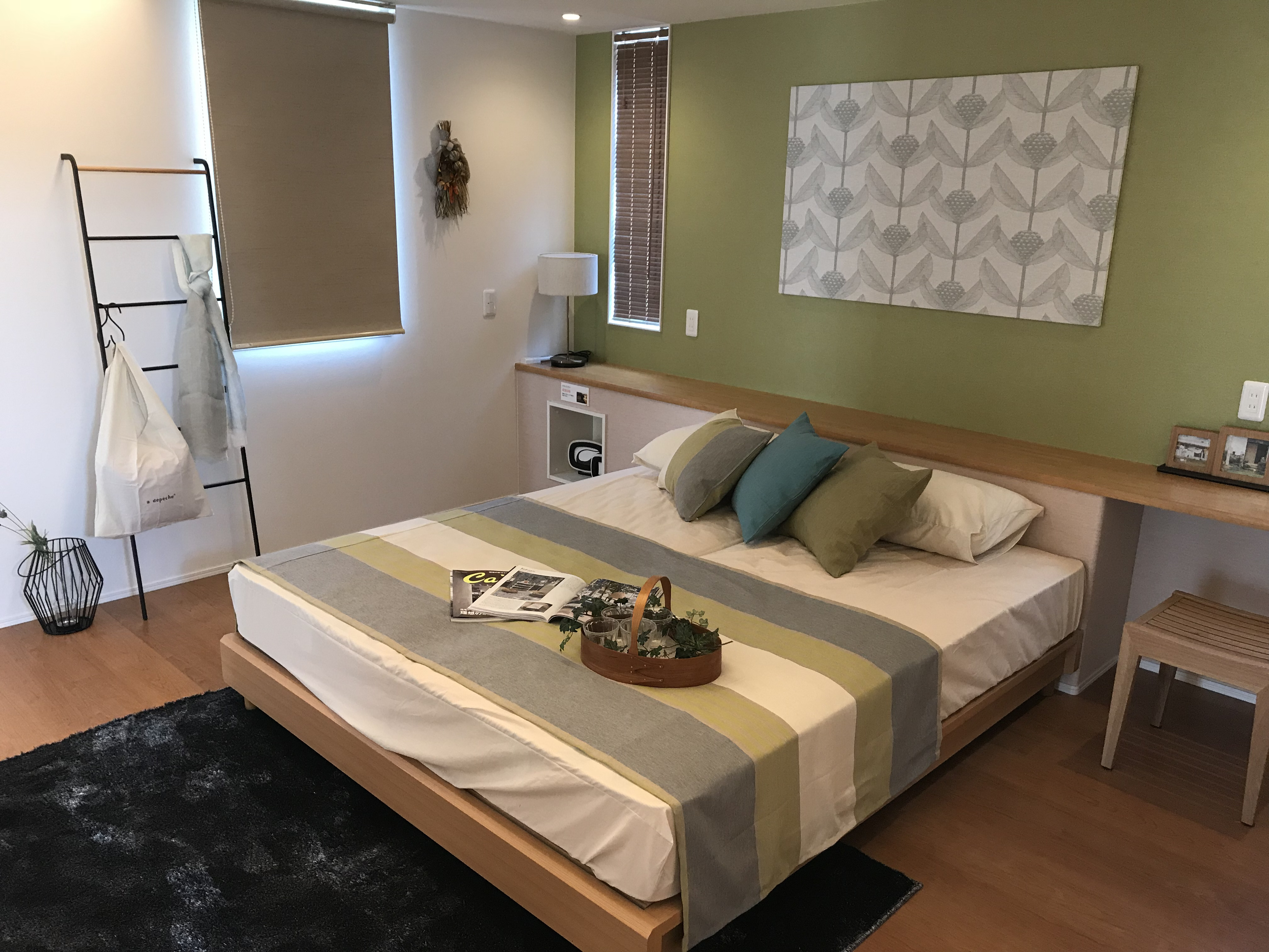 グリーン・ブラウン・ブルー(緑・木・水)と自然を感じさせるカラースキームでコーディネートしました。