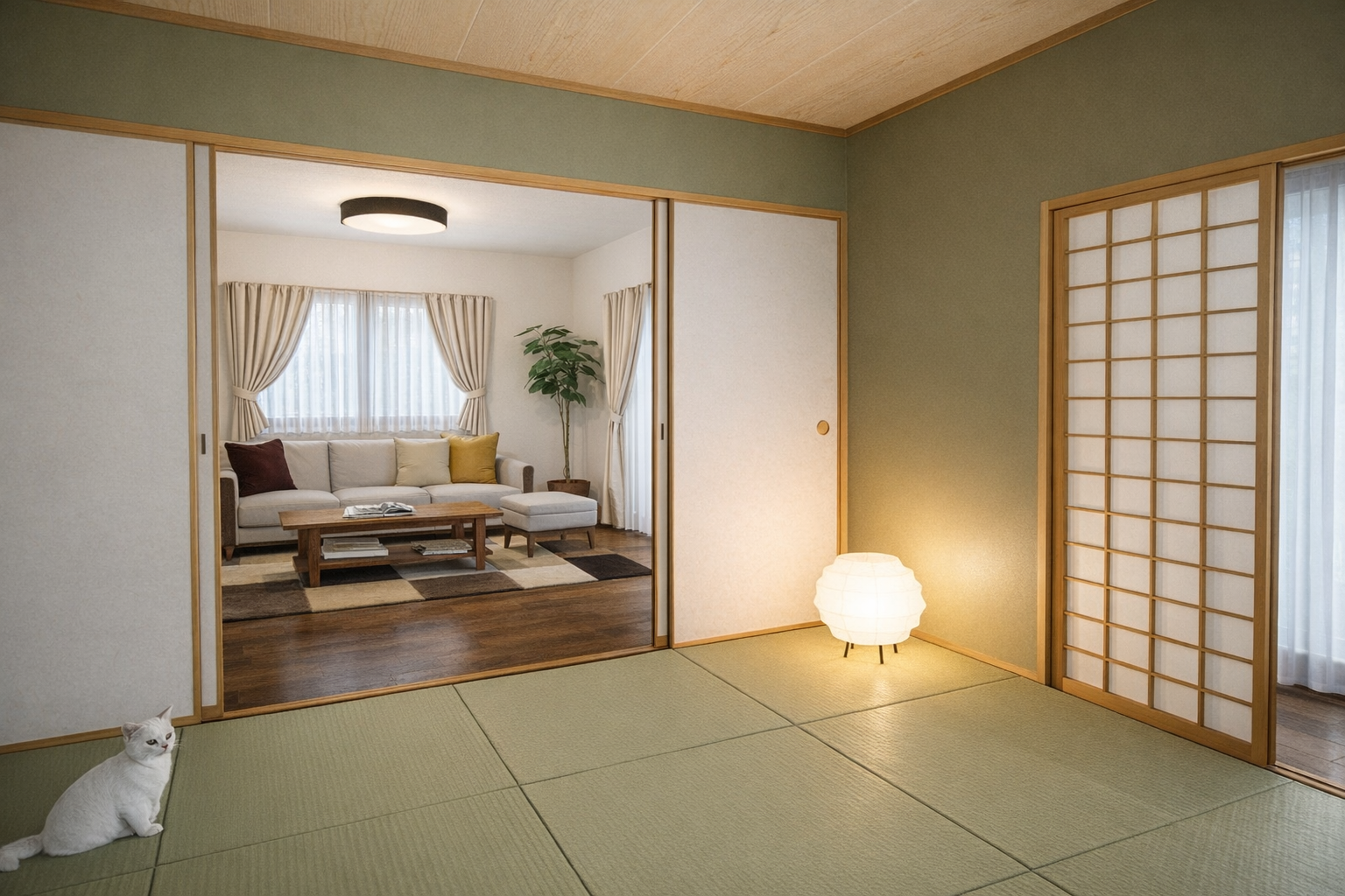 障子越しのやさしい光と畳の質感が、日常の中に静かなリズムを生み出します。