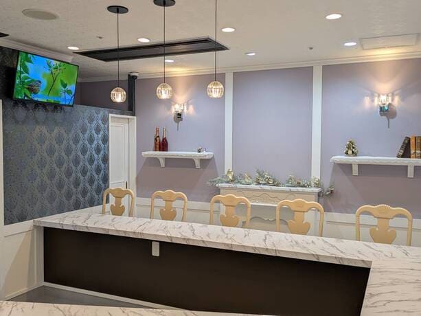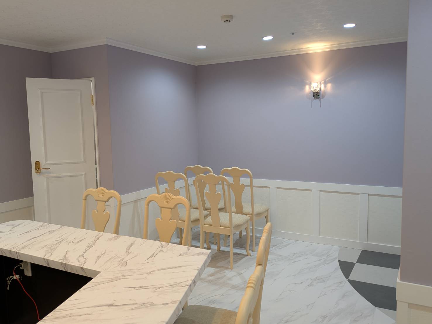 お店のインテリアスタイルは、「ヨーロッパ調のクラシックなエレガントスタイルで上品な雰囲気」が必須条件でしたので、予算内を考慮した内装材選定、家具選びを行なっております。