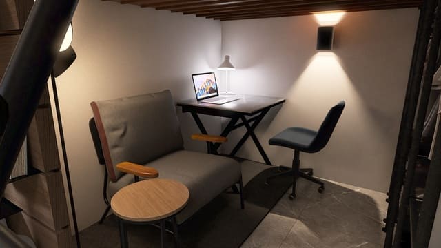 宿泊型コンテナハウスの内装デザインと家具インテリアコーディネートをご提案しました。